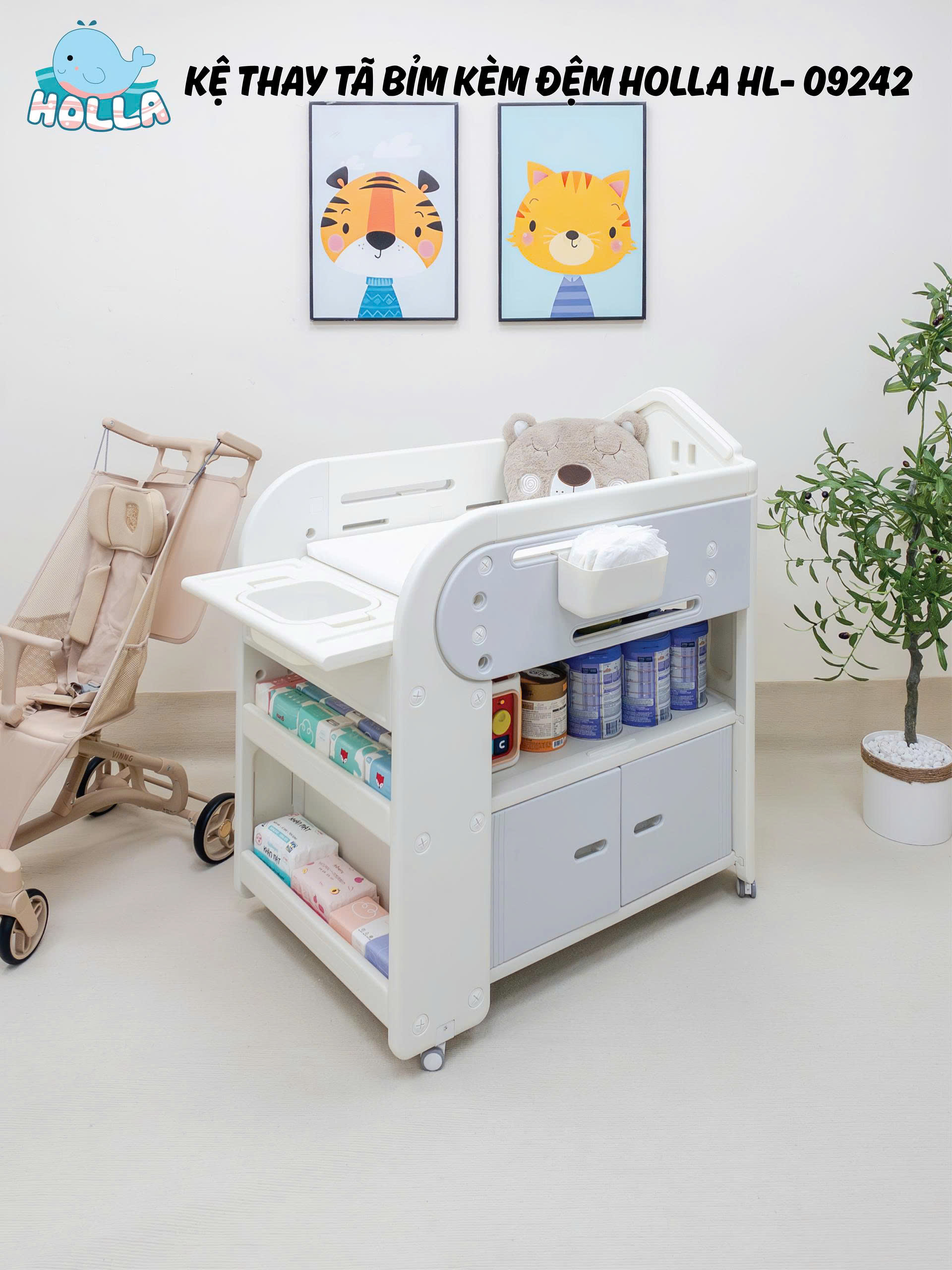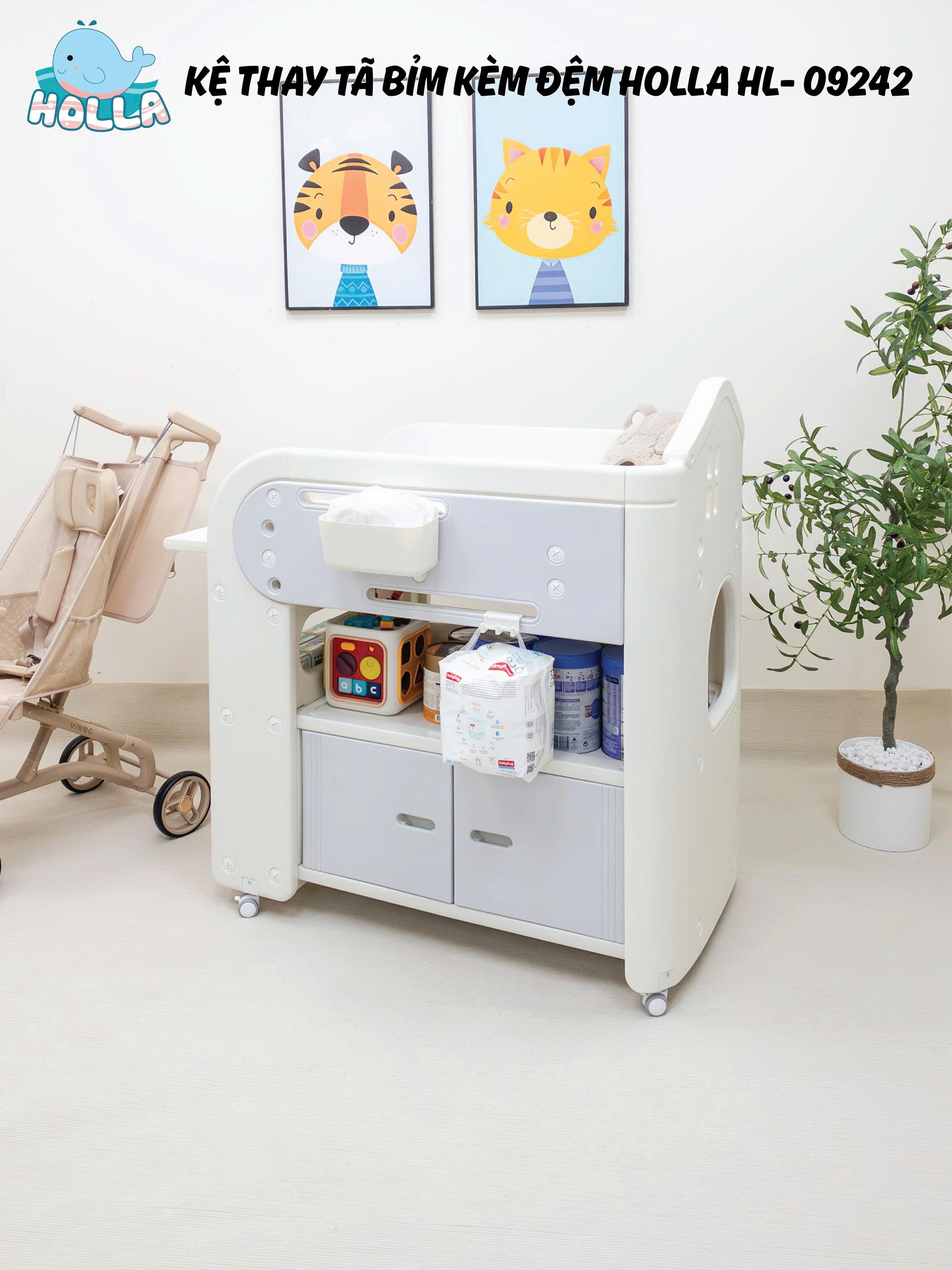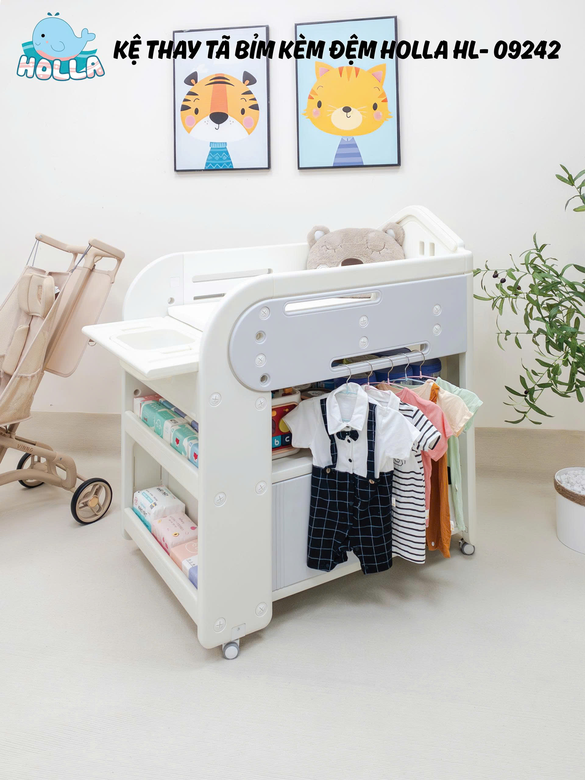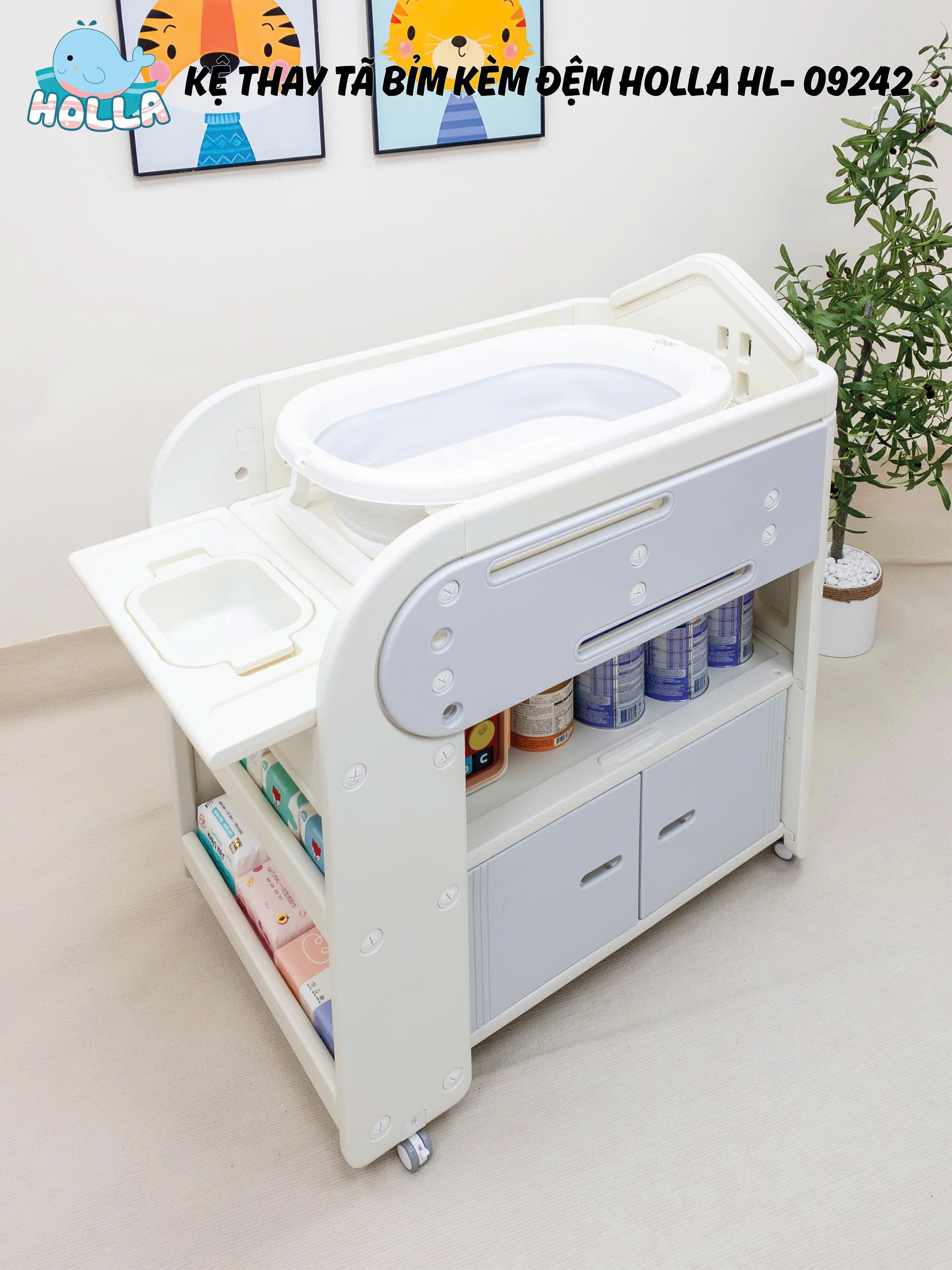 Mẹ ơi, chăm bé giờ đây không còn là "cuộc chiến" nữa với kệ thay tã bỉm đa năng Holla HL-09242 – đơn giản và tiện lợi hơn bao giờ hết!