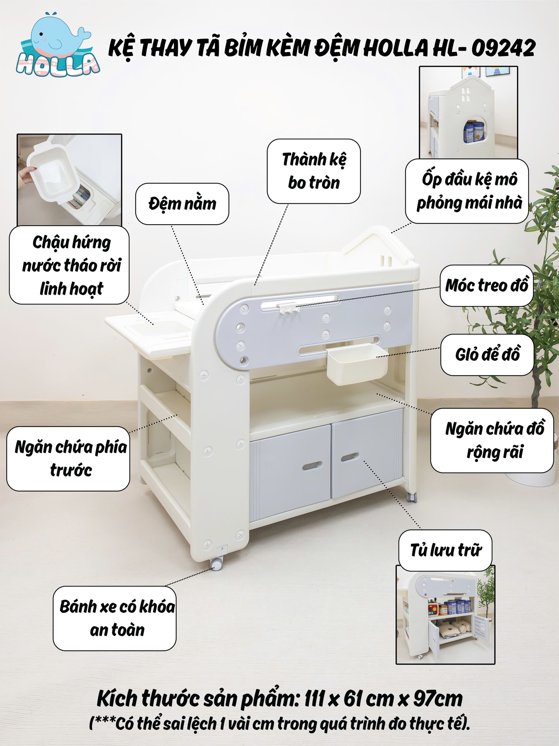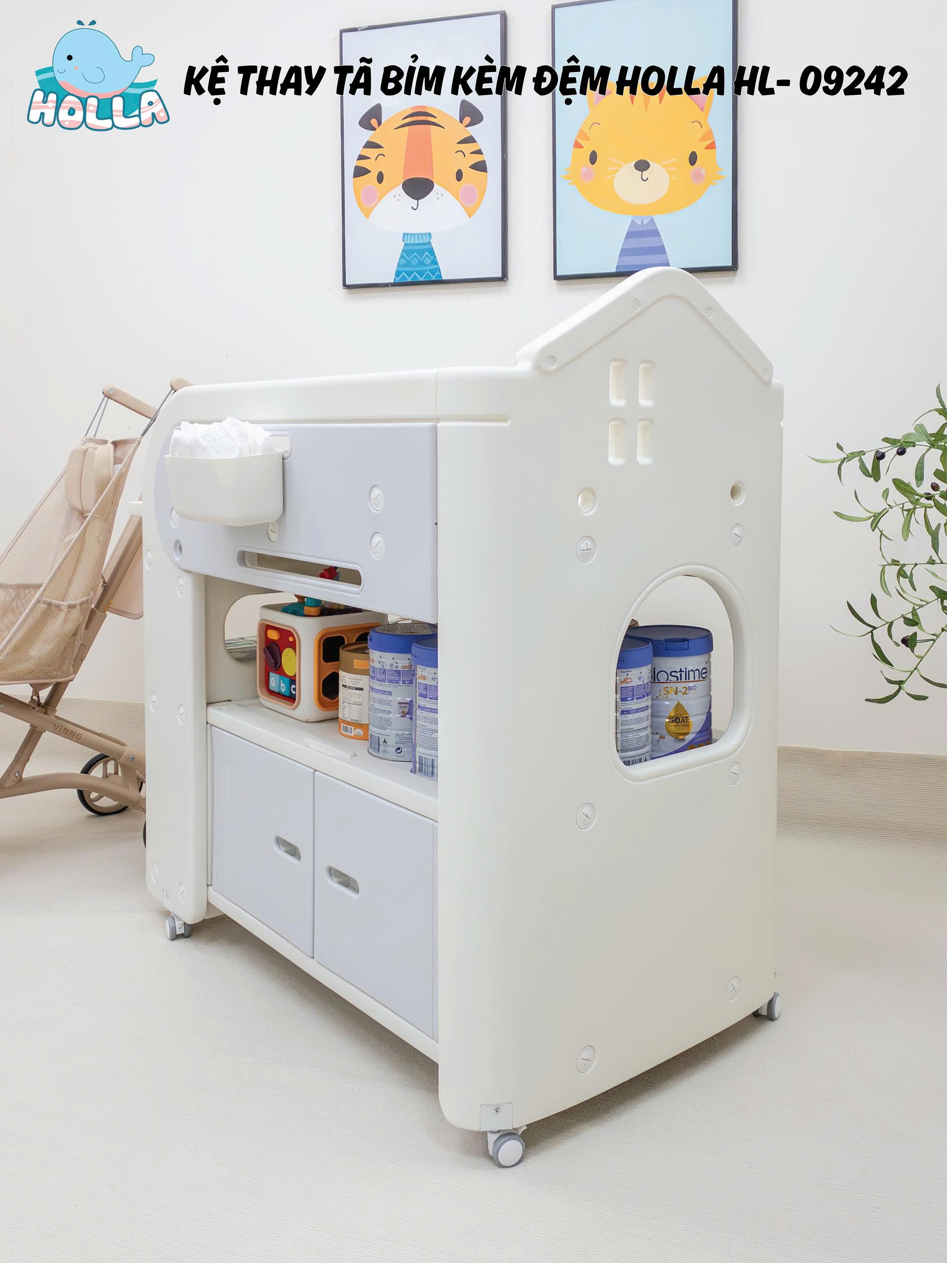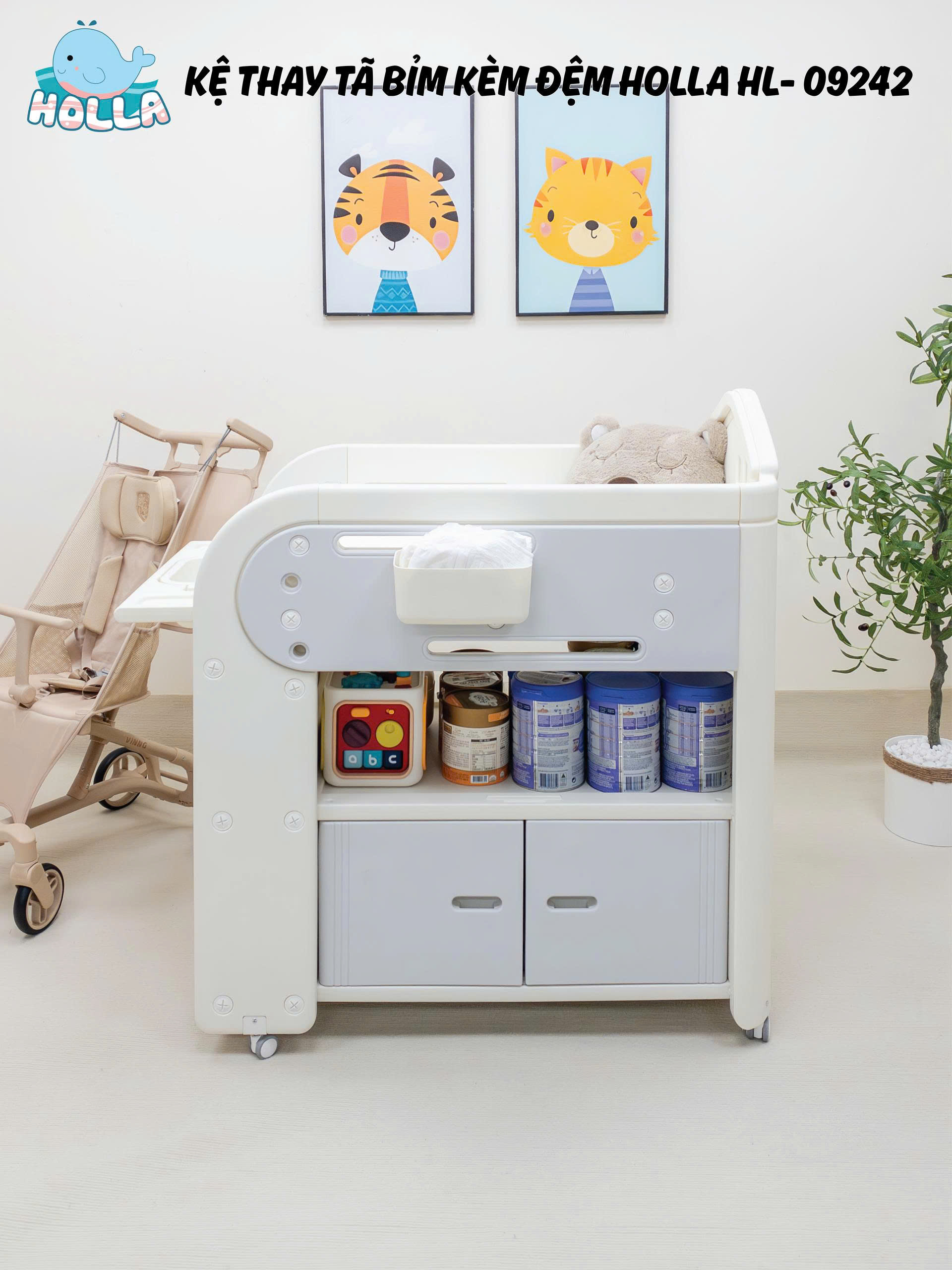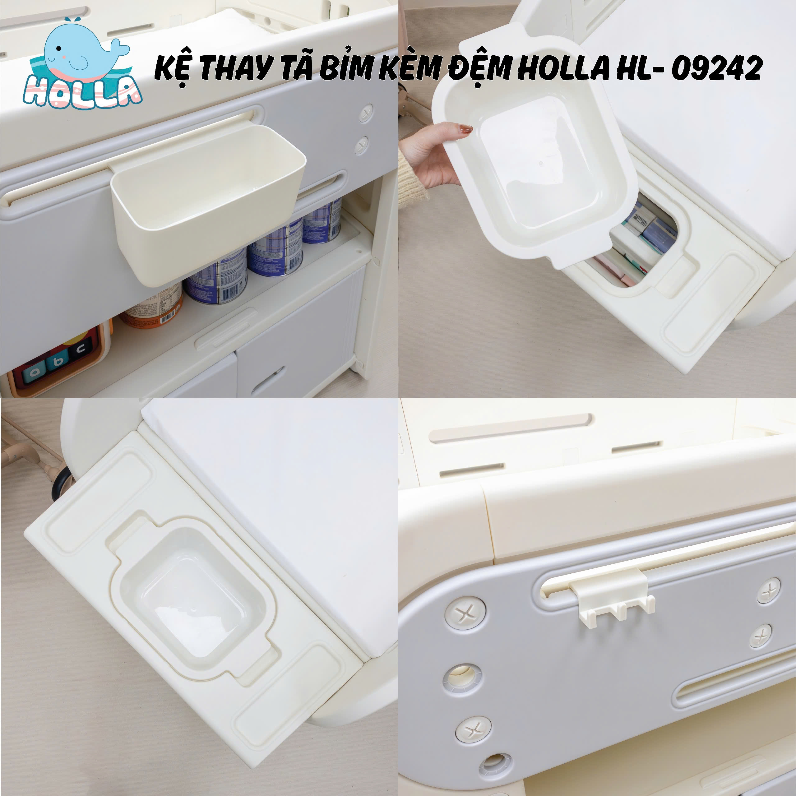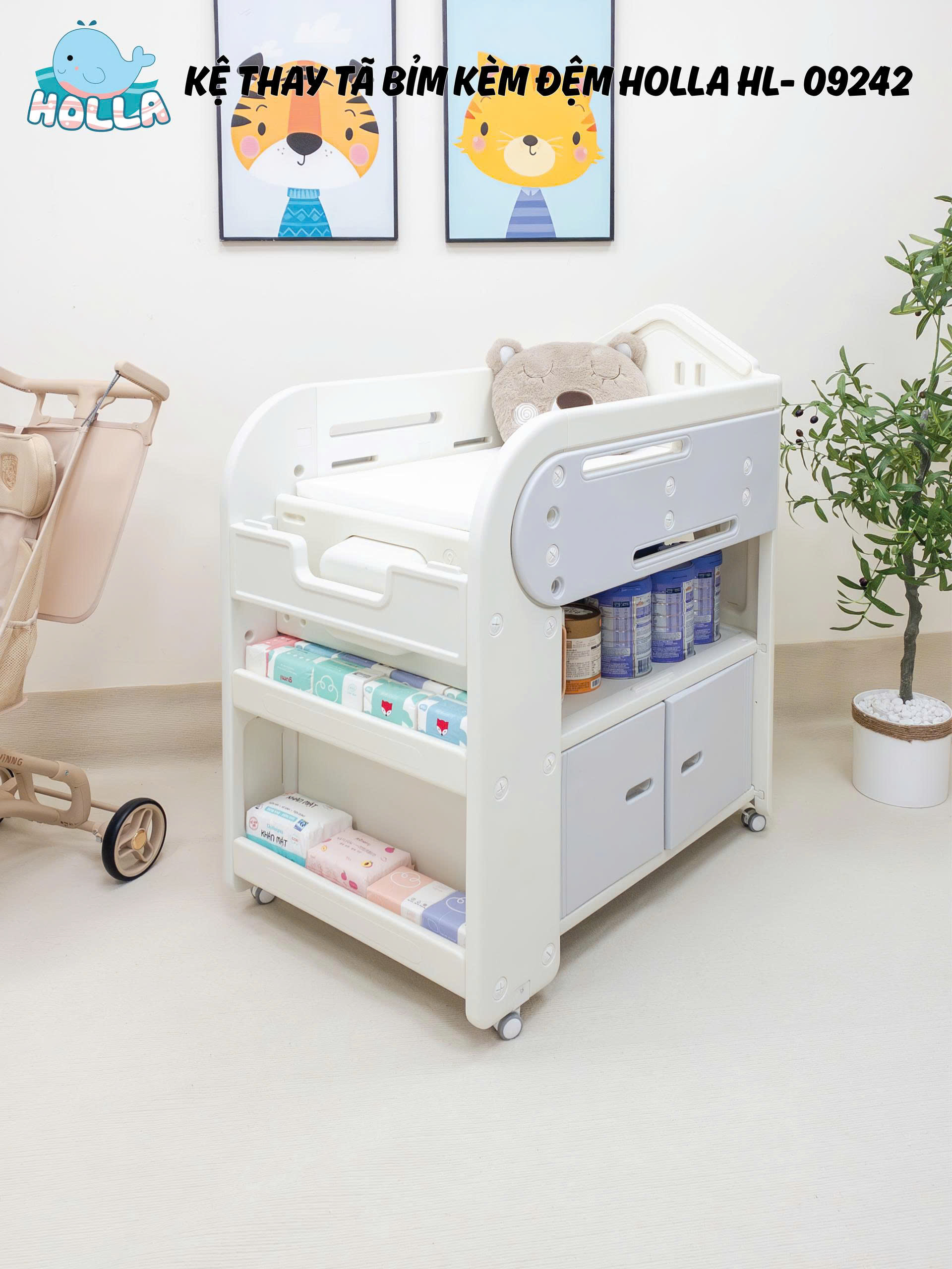 Mẹ ơi, chăm bé giờ đây không còn là "cuộc chiến" nữa với kệ thay tã bỉm đa năng Holla HL-09242 – đơn giản và tiện lợi hơn bao giờ hết!