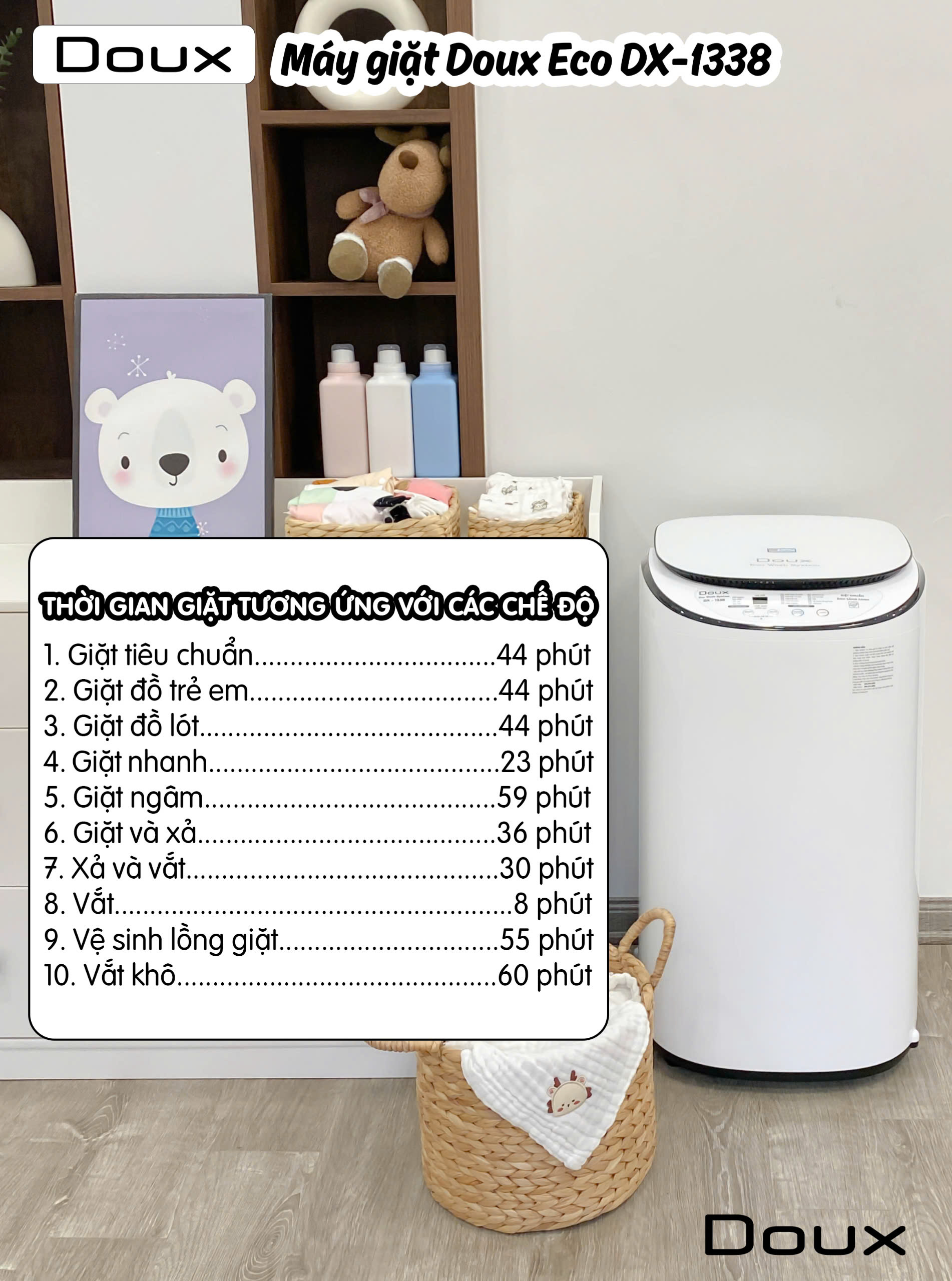 Dòng máy giặt mini Doux Eco mới DX-1338 vừa ra mắt kết hợp nhiều tính năng xịn xò, hứa hẹn sẽ là trợ thủ giặt đồ lý tưởng cho gia đình nhỏ, căn hộ chung cư mini, đặc biệt là các mẹ bỉm sữa bận rộn, tiết kiệm thời gian giặt quần áo cho con mỗi ngày.