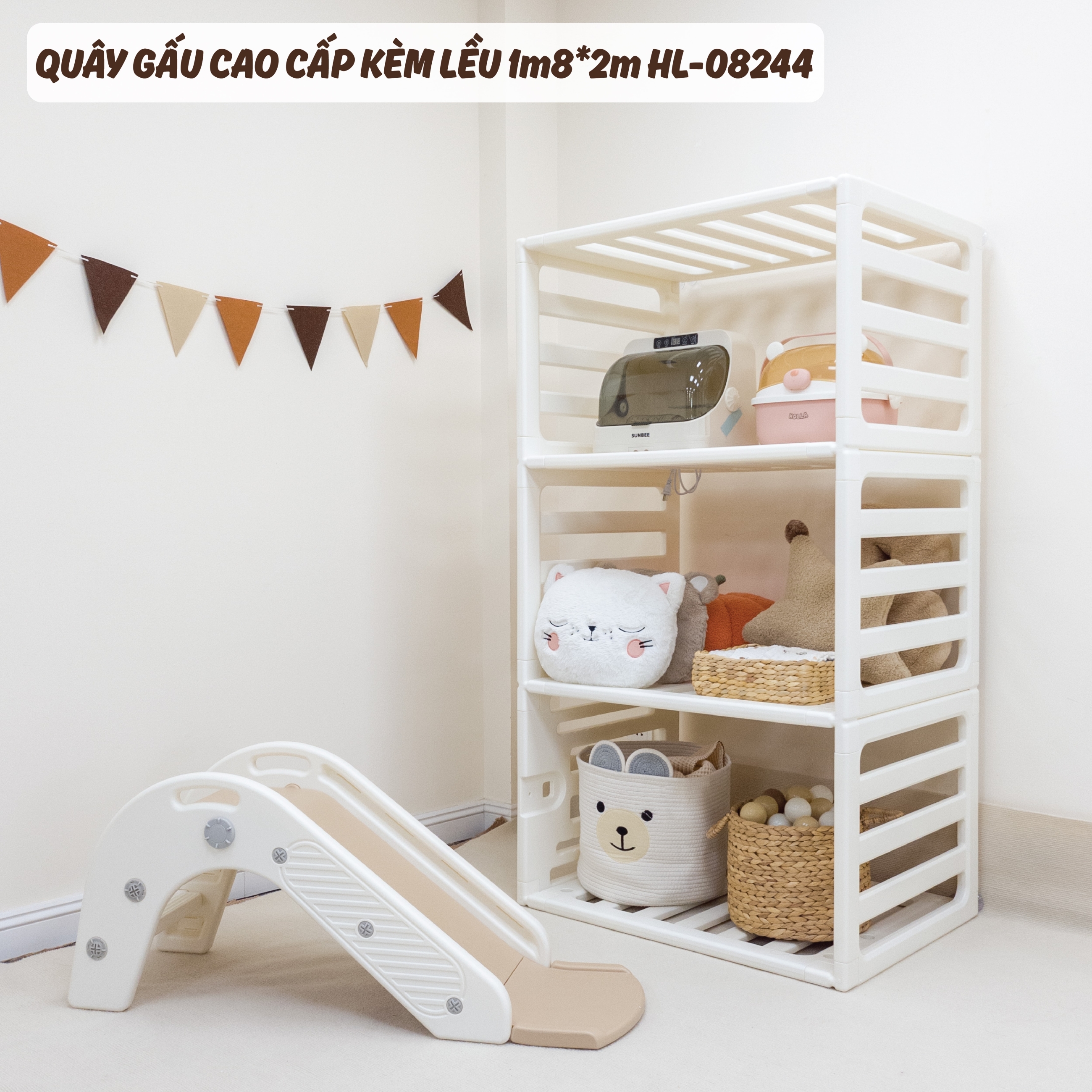 + Kệ lưu trữ tiện lợi: Giúp mẹ dễ dàng tổ chức đồ dùng của bé, tiết kiệm không gian