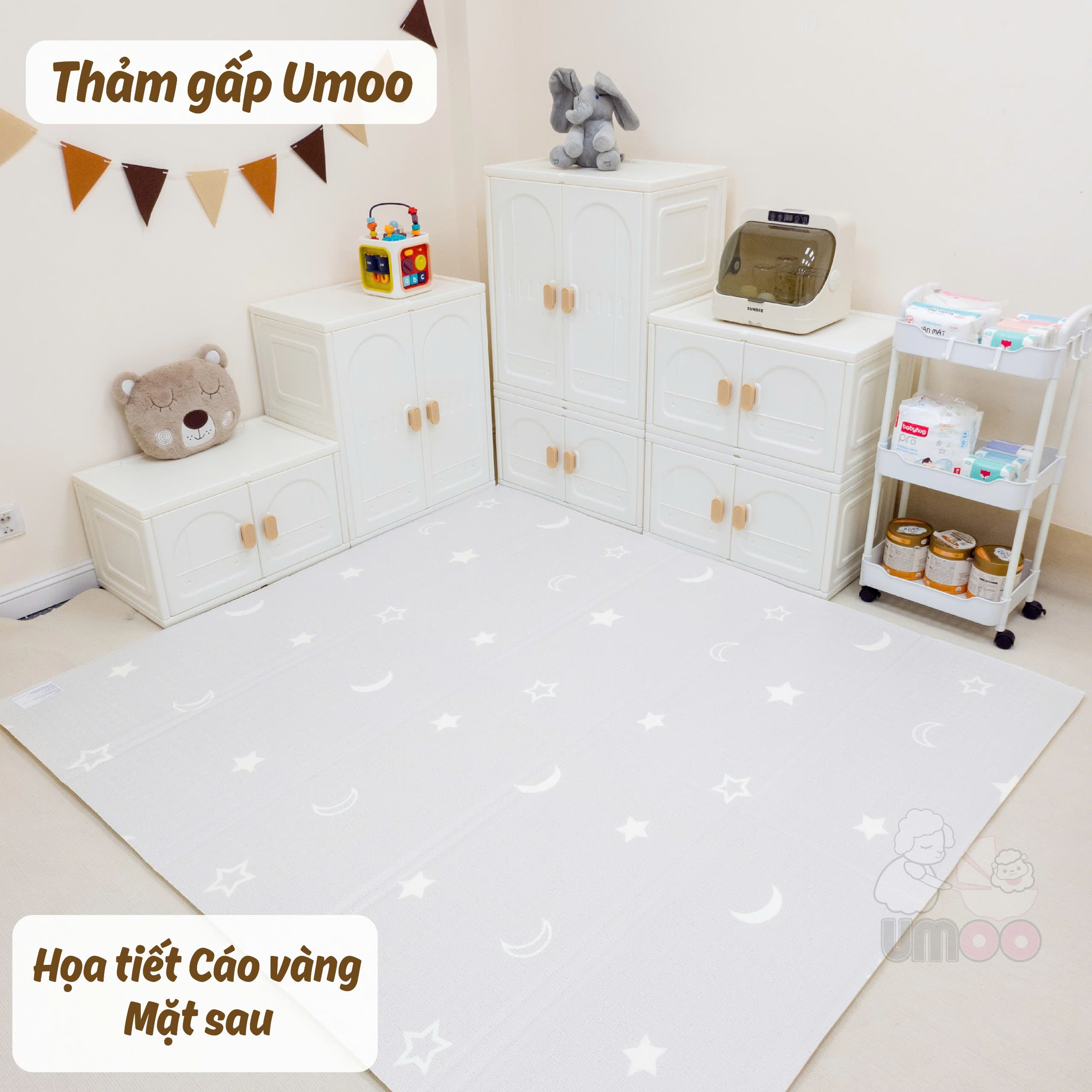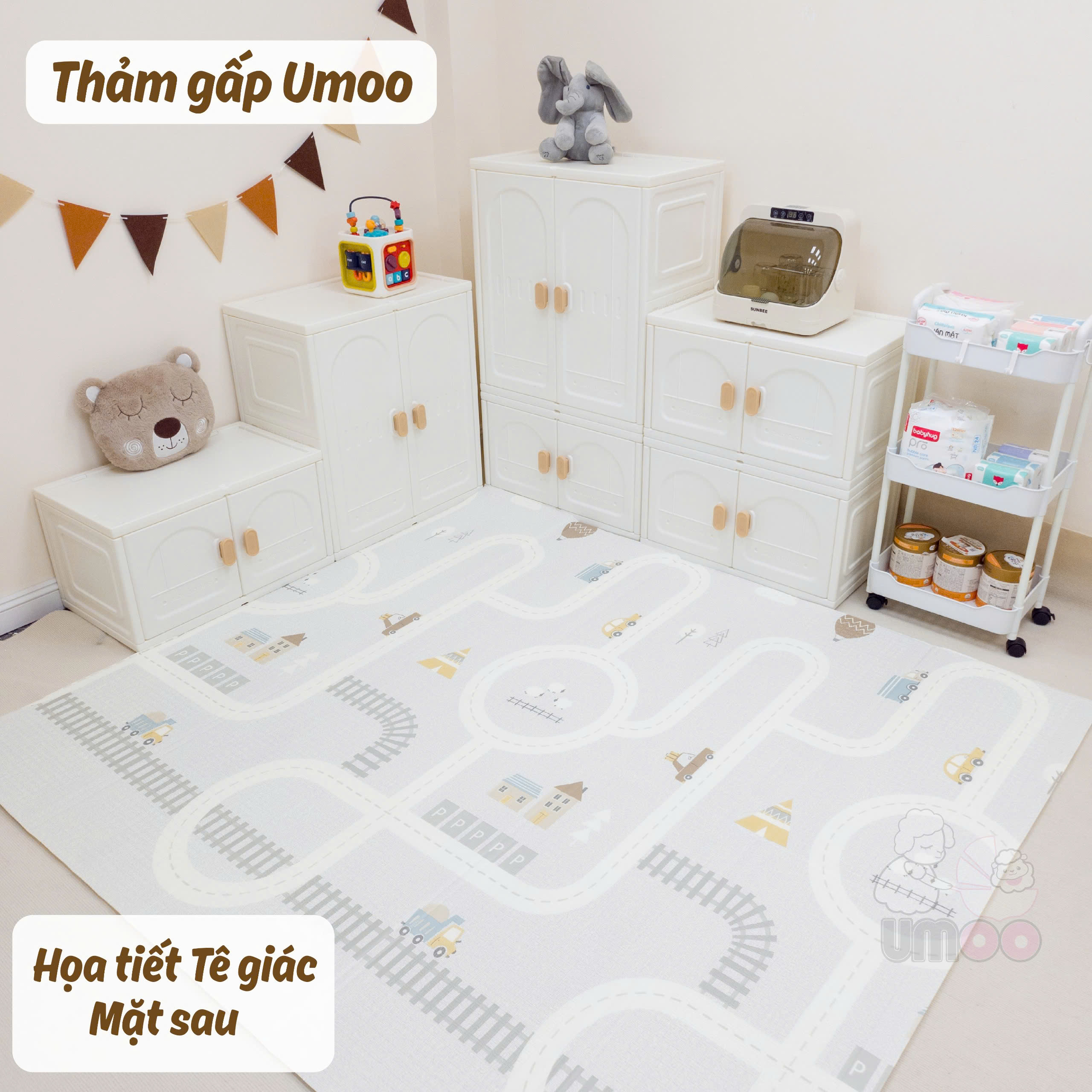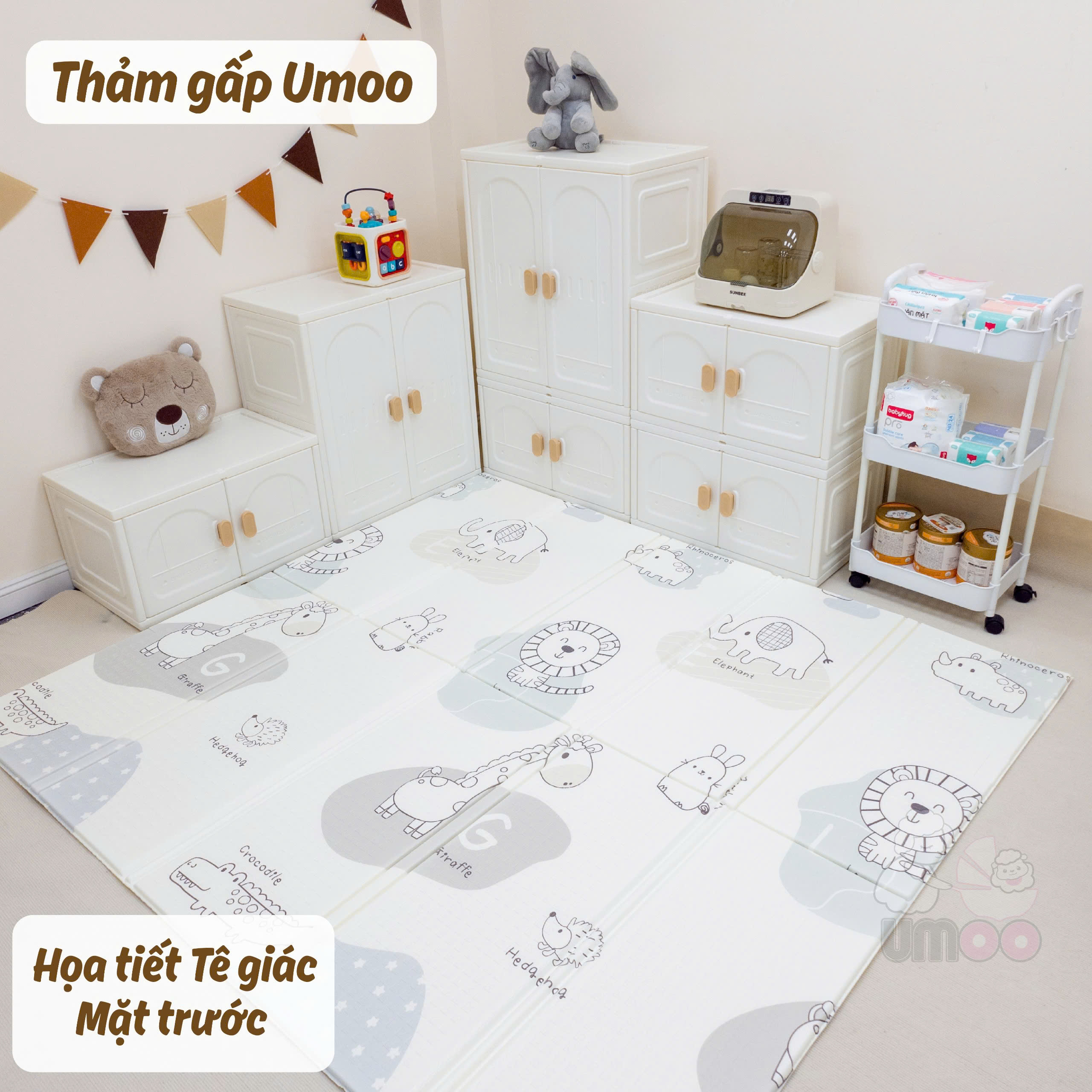 Chăm con vất vả mẹ lại phải suốt ngày dọn dẹp mệt muốn đứt hơi, hiểu được nỗi phiền của mẹ thảm gấp Umoo an toàn và tiện lợi giúp mẹ giải quyết hết các vấn đề trên.