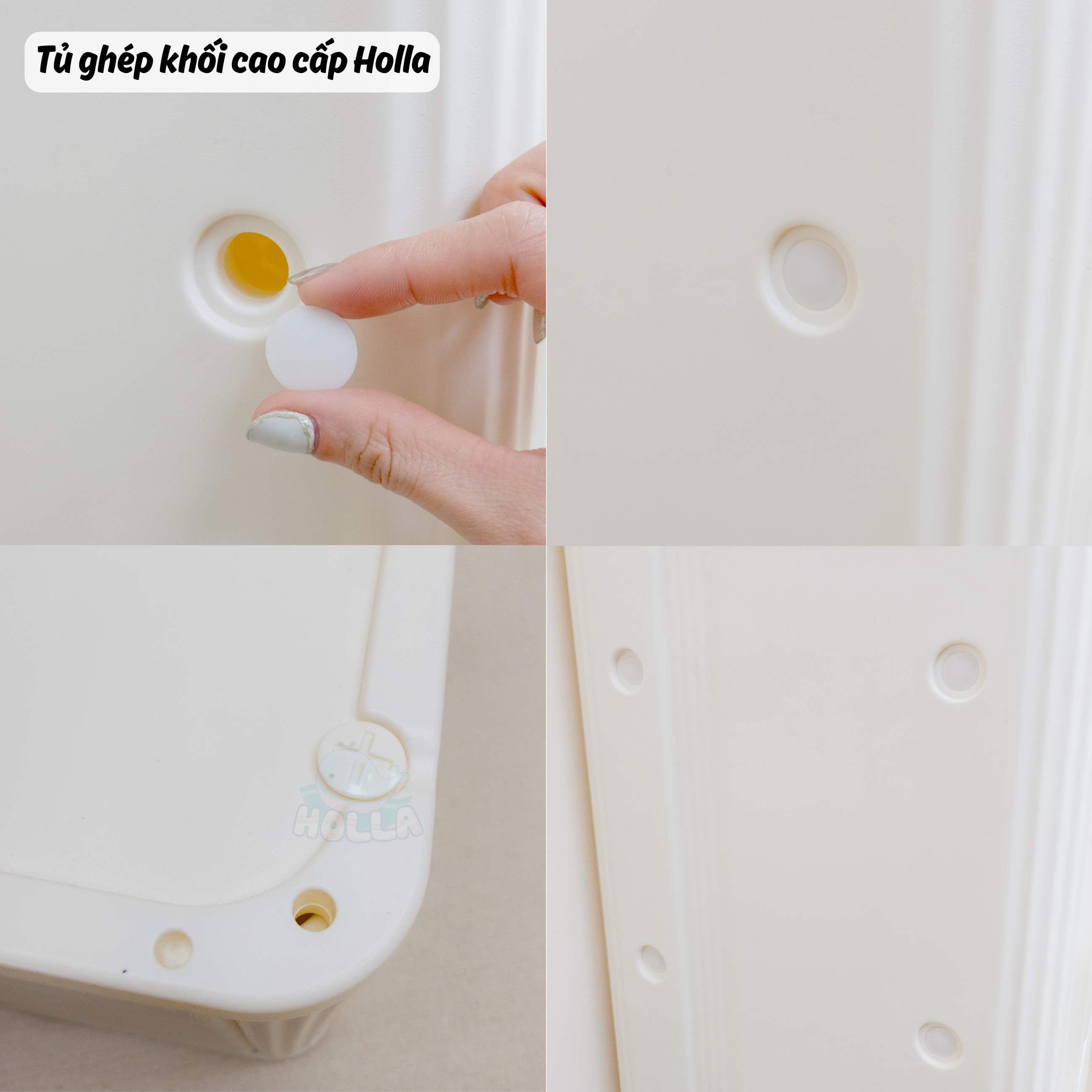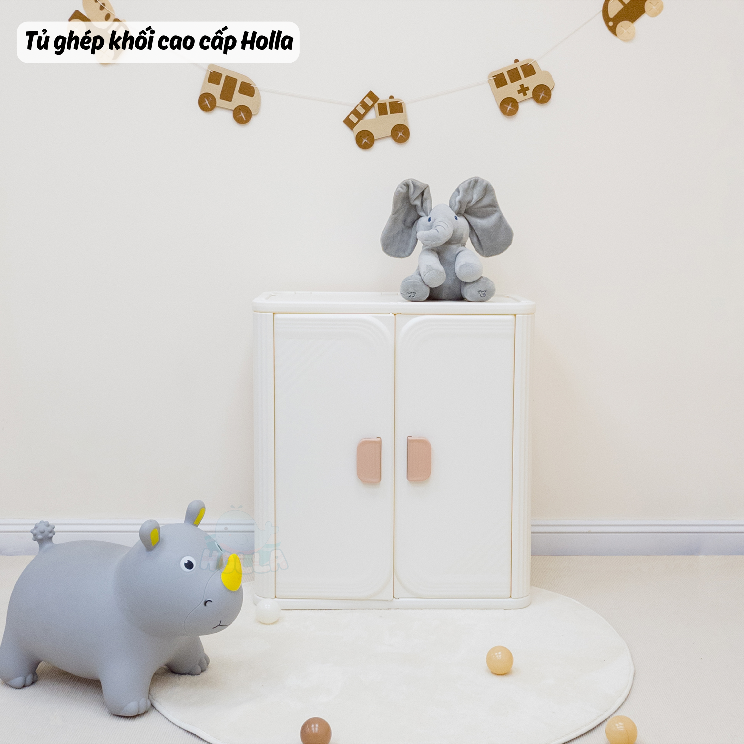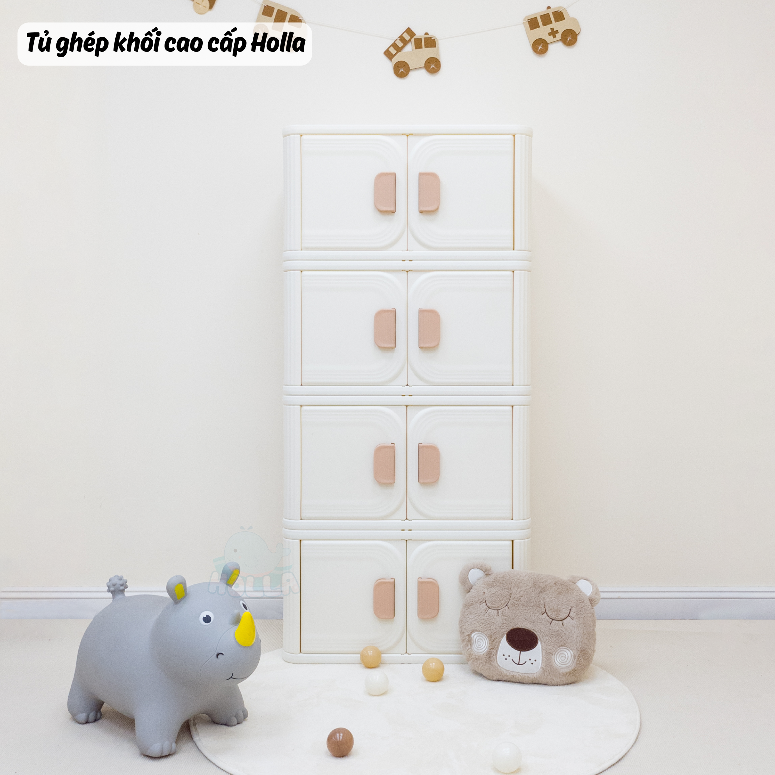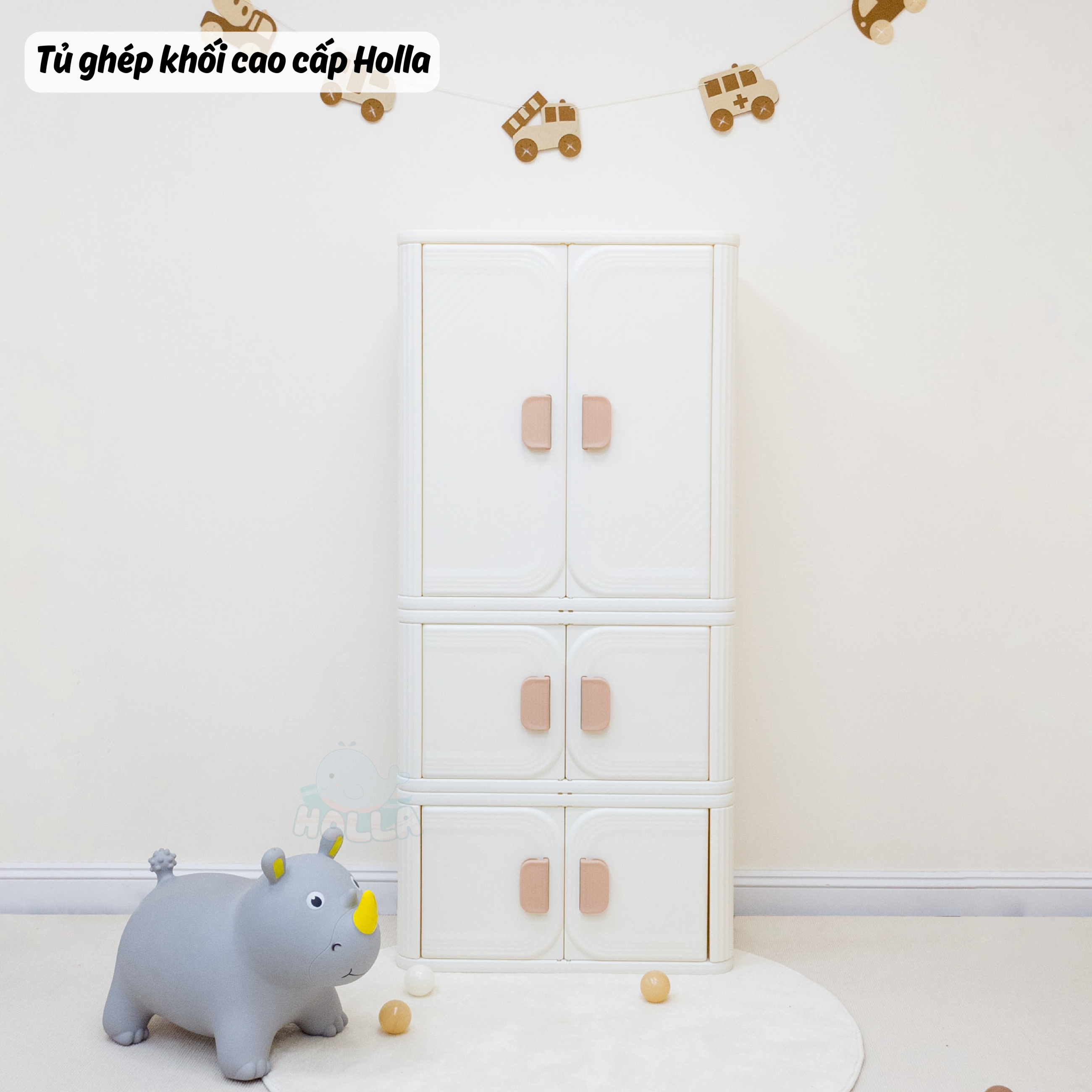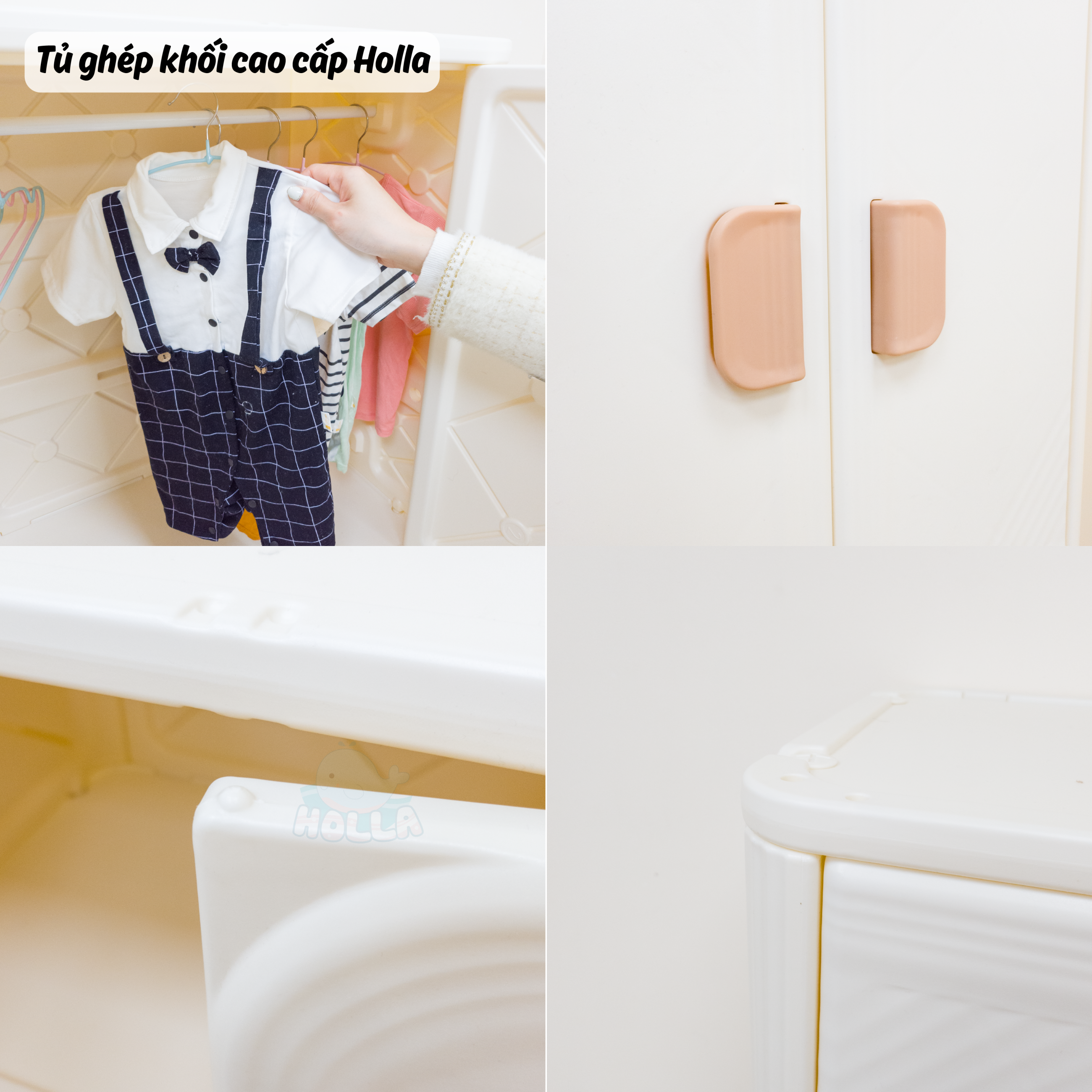 Chỉ 1 từ “siu phẩm” là không đủ để mô tả hết về độ đẹp của em ý. Cả góc nhà sáng bừng, gọn gàng, lung linh hẳn lên, tất cả là nhờ tủ ghép khối cao cấp Holla. Với 2 phiên bản tủ to và tủ nhỏ cho mẹ và bé thoải mái sắp xếp đồ đạc theo ý thích: